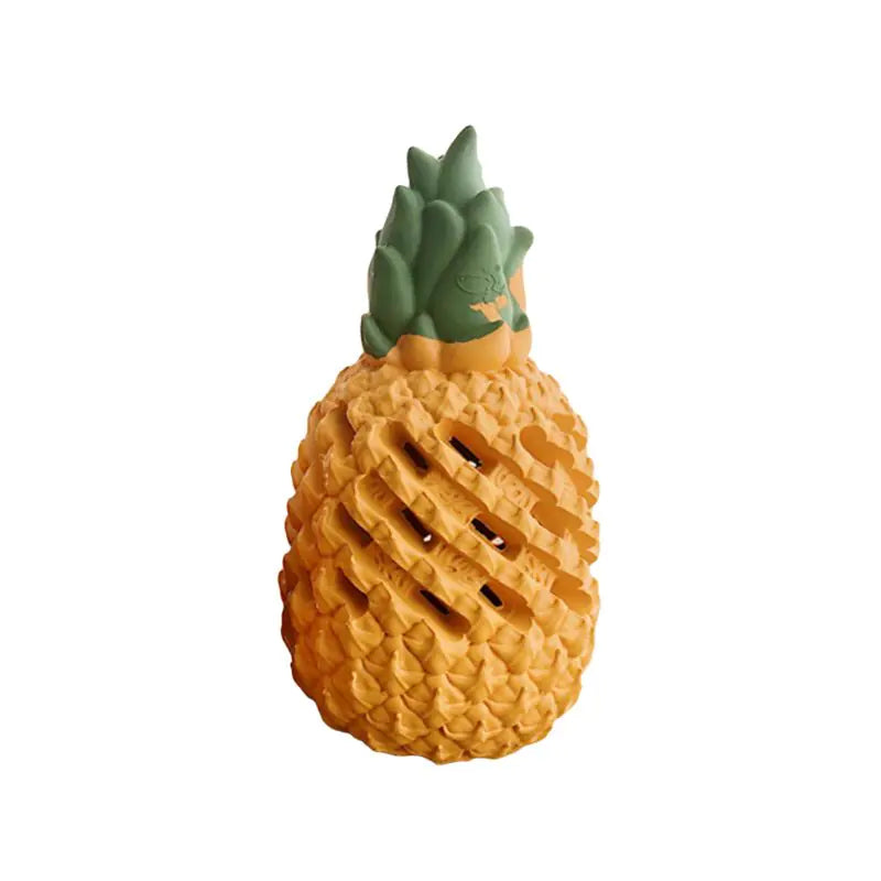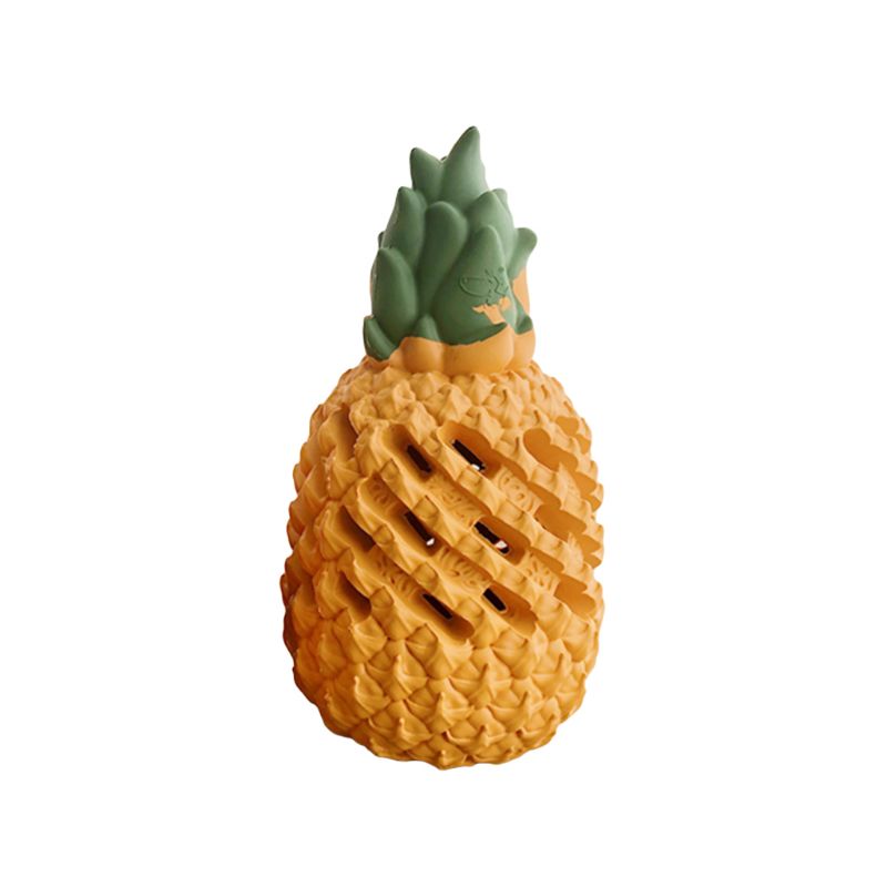 Crafted from 100% natural, non-toxic rubber, this toy boasts an appealing pineapple shape that features a hollow center filled with delicious flavors. The realistic texture not only captivates your dog's interest but also encourages chewing, which is essential for their oral hygiene.