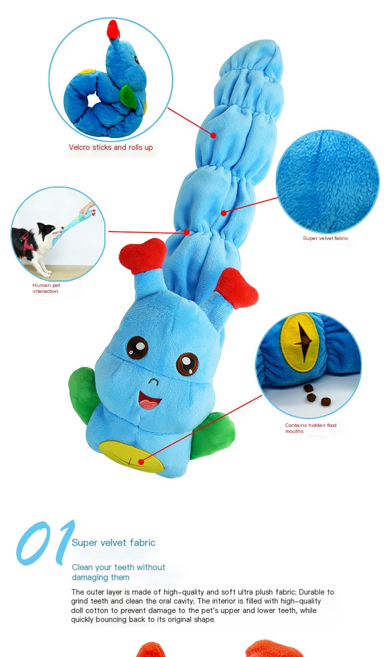 Unleash the joy in your furry friend’s life with our vibrant Blue Vegetable Worm plush toy! This innovative dog toy is designed to provide hours of entertainment and engagement for your beloved pet.